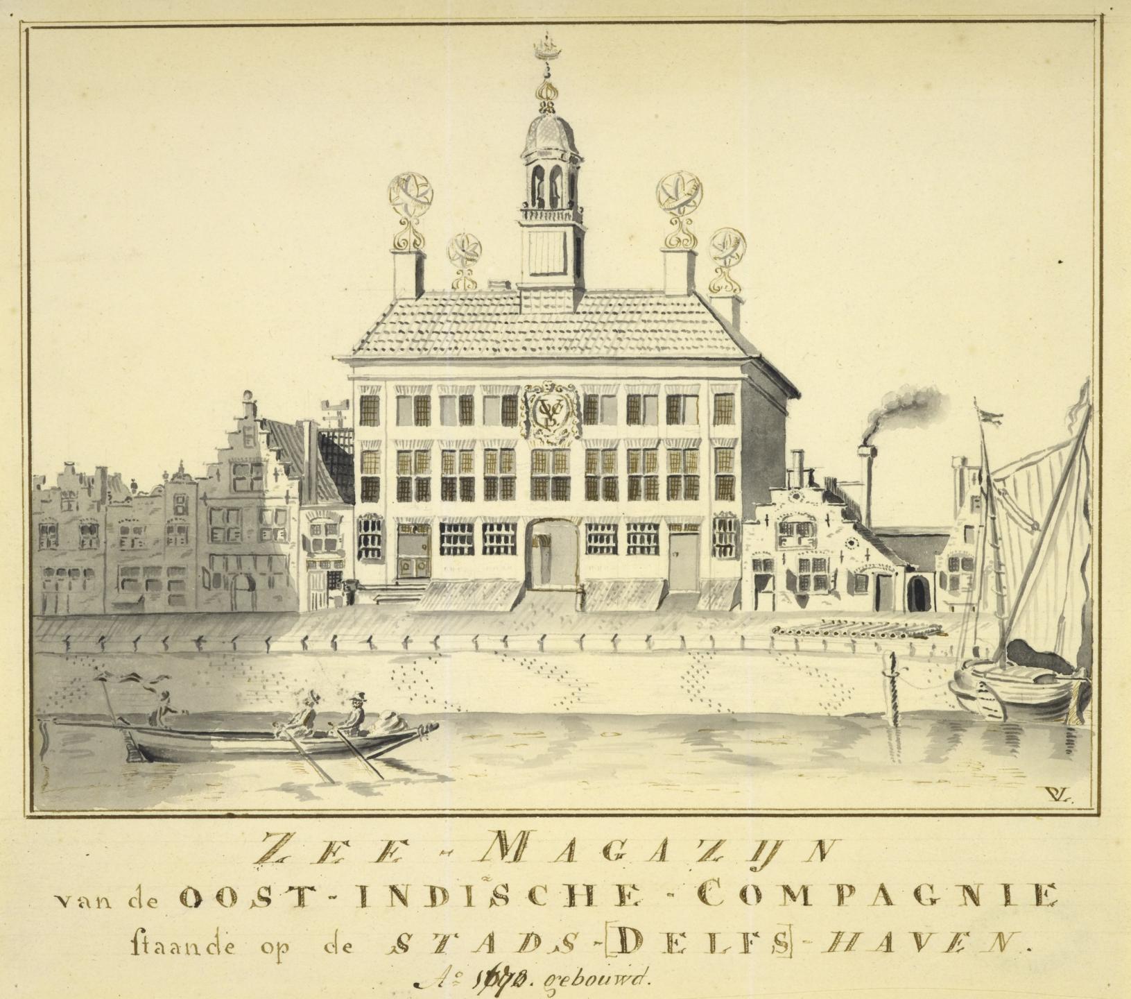 De graaf van Holland geeft Delft eind 14e eeuw toestemming om een scheepvaartkanaal aan te leggen tussen de Maas en Overschie. Met de aanleg van een nieuwe haven, Delfshaven, kan Delft een deel van het handelsverkeer in de regio naar zich toetrekken. Rond de in 1600 aangelegde winterberging voor de haringvloot, de Buizenwaal, staat de gemeente Delft scheepsbouw toe. Ten noorden en ten westen van het de Buizenwaal ontstaan scheepswerven. In 1606 loopt het eerst gebouwde VOC-schip de ‘Delft’ hier van stapel. Tot aan de opheffing van de VOC in 1795 zullen nog 110 schepen op deze werf gebouwd worden. De VOC bezit uiteindelijk drie scheepswerven in Delfshaven. Ook koopt de compagnie in 1670 een aantal loodsen aan de Achterhaven. Op de plek van deze loodsen bouwt de VOC in 1672 het grote Zeemagazijn dat bedoeld is voor de opslag van goederen en proviand voor de vertrekkende schepen. Handelswaren worden hier niet bewaard. Dat gebeurt in Delft.