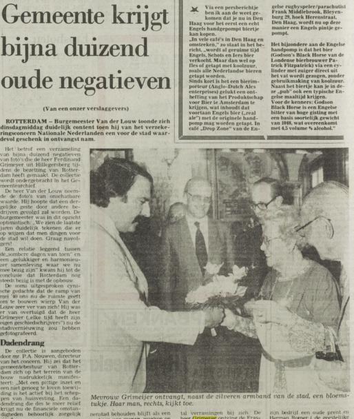 - Fraai geschenk voor Rotterdam: Unieke collectie oorlogsfoto's. In: Het Vrije Volk 10-04-1980 (Via Delpher)