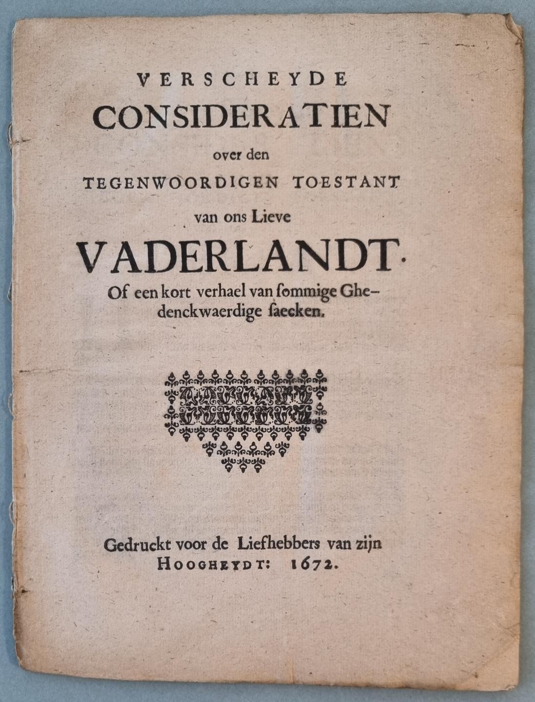 De Rotterdamse predikant Jacobus Borstius (geboren in Purmerland) was verantwoordelijk voor een van de meest besproken pamfletten van 1672. Hoewel anoniem verschenen, werd hij door tijdgenoten als snel geïdentificeerd als de auteur van het pamflet met de titel Verscheyde consideratien over den tegenwoordige toestant van ons lieve vaderlandt. Het was met negen edities een van de populairste publicaties van het jaar, en verscheen kort na de benoeming van Willem III tot stadhouder. De inhoud van de Verscheyde consideratien was luid en duidelijk: de oorzaak voor de rampzalige toestand van de Republiek was verraad. Al op de eerste bladzijde werd dit helder gemaakt: de buitenlandse vijand had nooit zoveel kwaad kunnen doen als hij niet geholpen was door de binnenlandse vijanden. Die vijanden waren de tegenstanders van de gereformeerde kerk en van het Oranjehuis. Oftewel, Johan de Witt en zijn Loevesteinse factie. Het pamflet leverde bewijs na bewijs voor het wanbeleid en verraad van de Loevesteiners, met als uiteindelijke resultaat de oorlog van 1672.