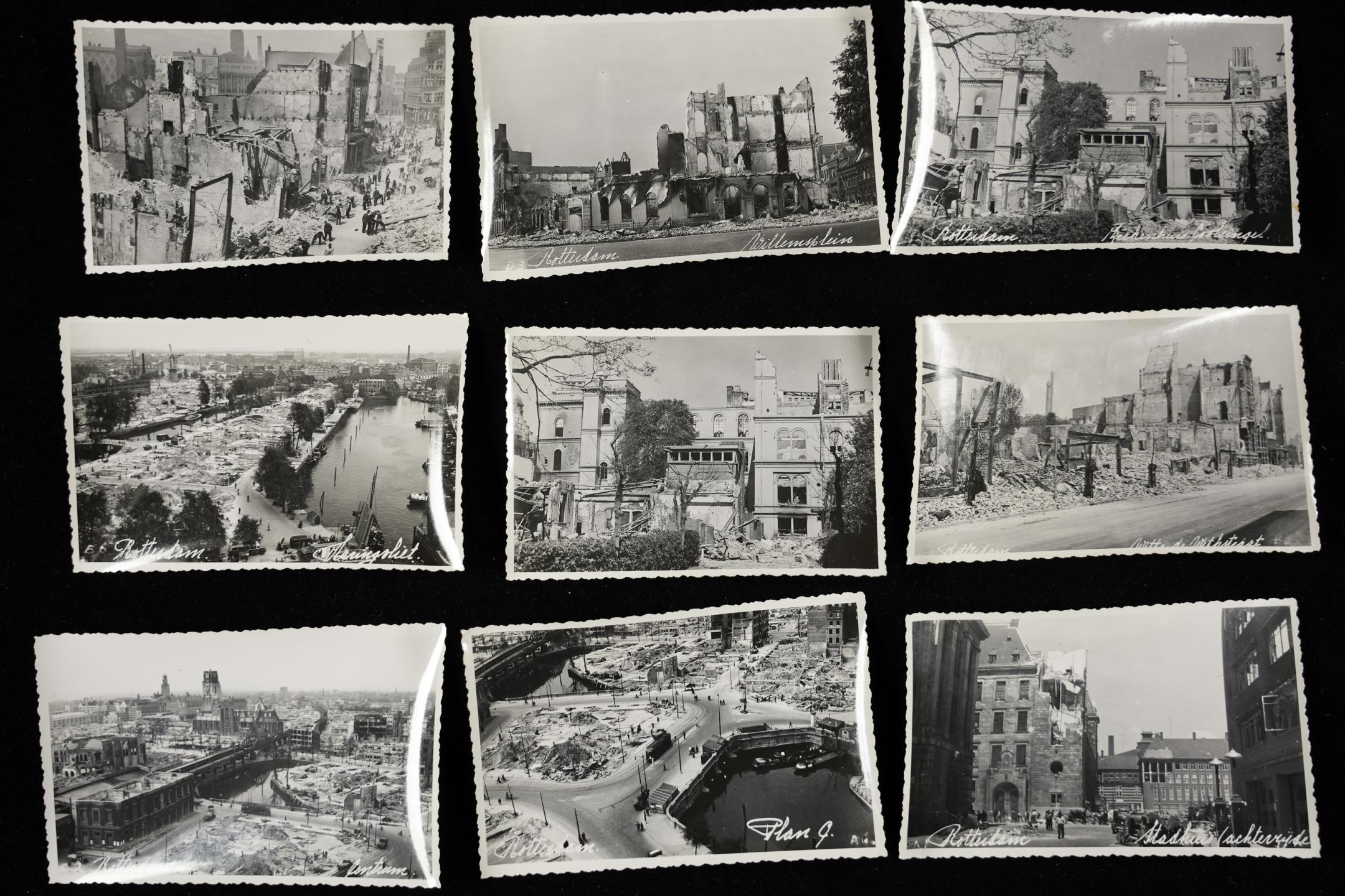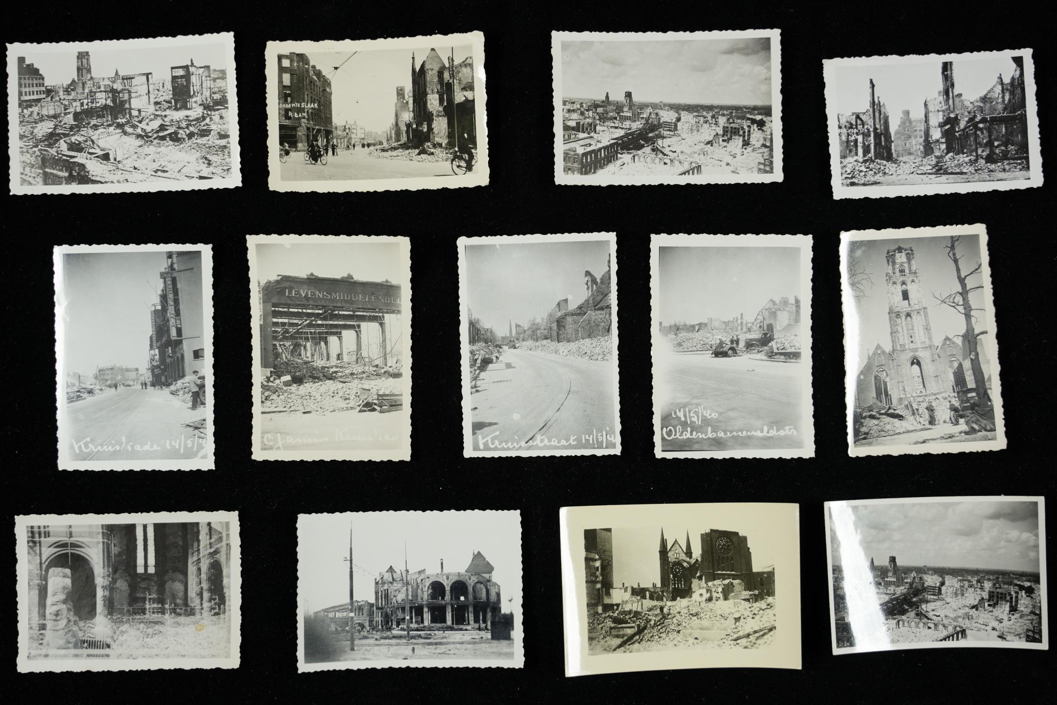Foto's van het puin na het bombardement in 1940 werden massaal gedrukt. Mensen plakten die vervolgens in hun eigen fotoalbums. Zulke foto's heeft het stadsarchief al voldoende.