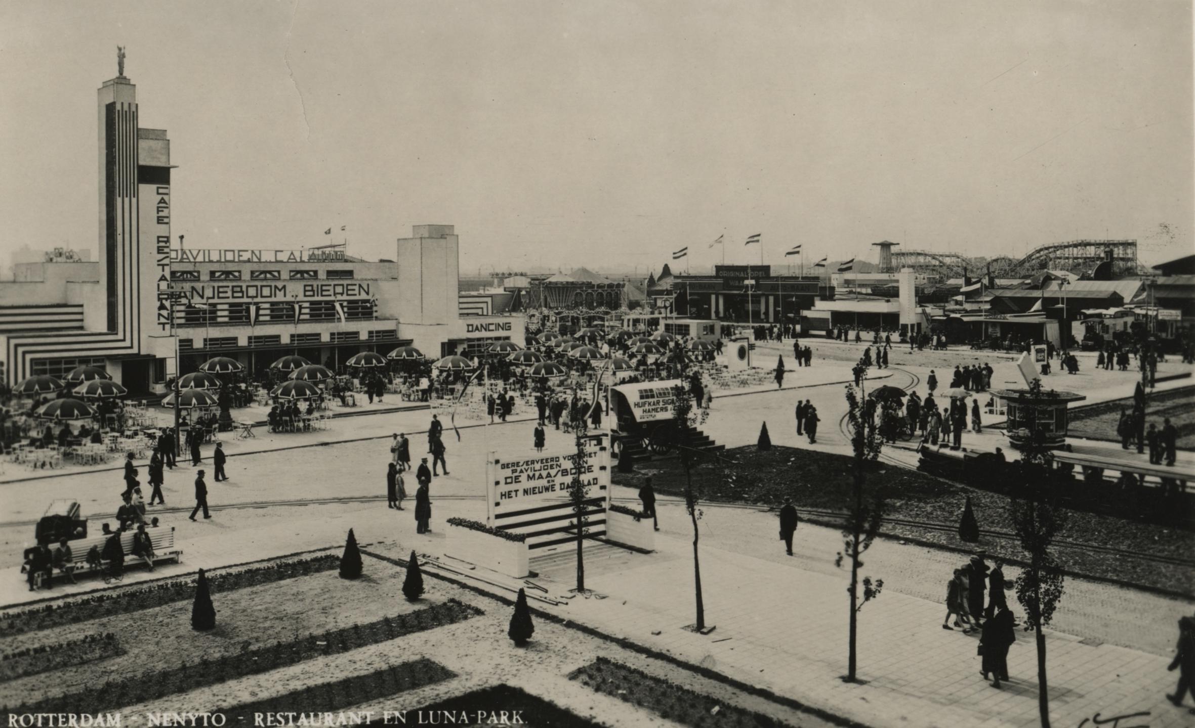 Om extra inkomsten te trekken is van meet af aan duidelijk dat er behalve de tentoonstelling gezorgd moest worden voor het nodige vermaak. In navolging van de kermisachtige attracties op wereldtentoonstellingen geldt het lunapark van Nenijto als grote publiekstrekker. Een miniatuurtrein pendelt elk kwartier tussen de hoofdingang naar de westzijde van het terrein en biedt bezoekers zo de mogelijkheid direct door te steken naar café-restaurant Caland en het daarachter gelegen attractiepark. In het Lunapark is ook een Afrikaans dorp nagebouwd waar een groep Senegalese gezinnen in ‘hun natuurlijke habitat’ bekeken kan worden.