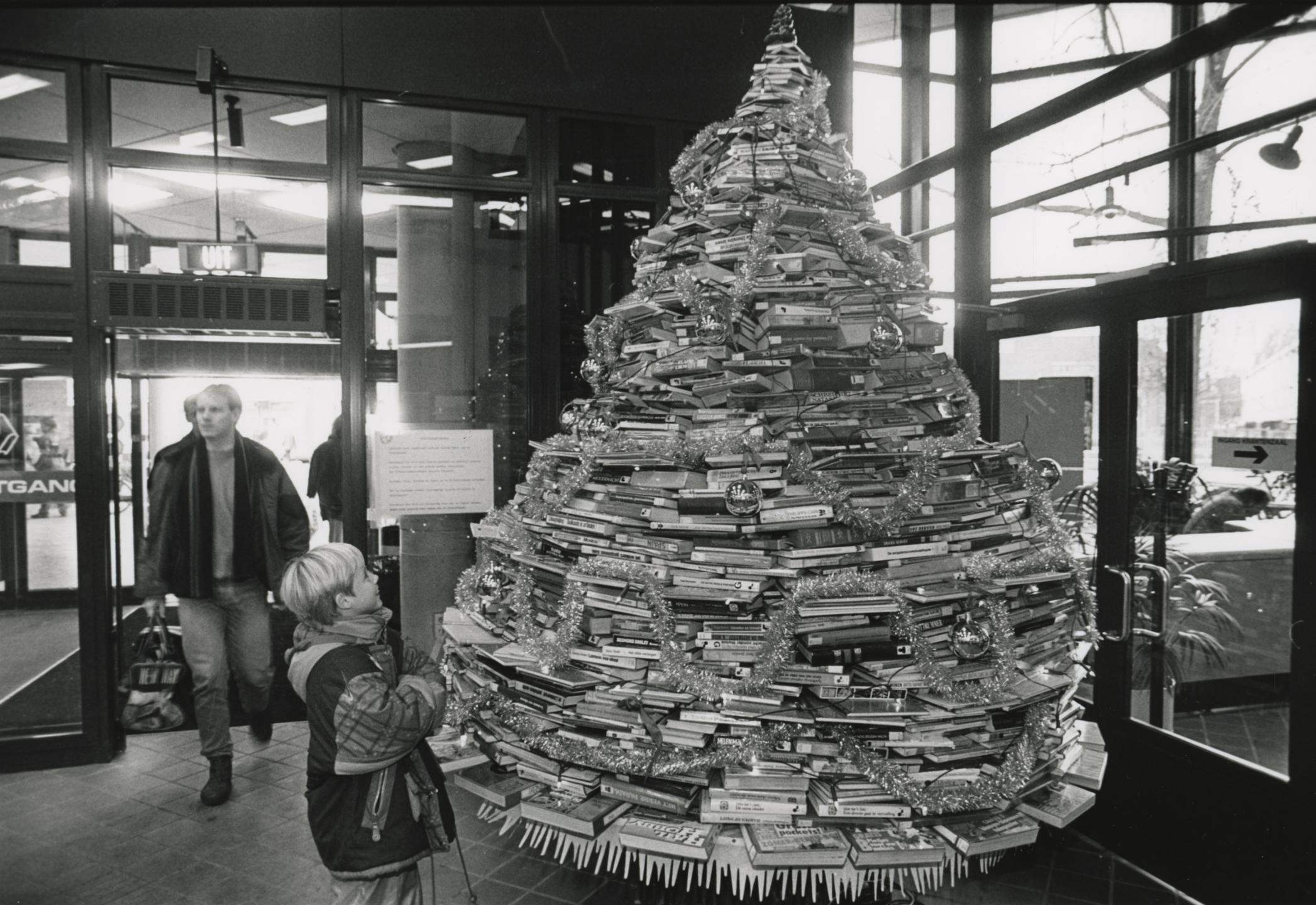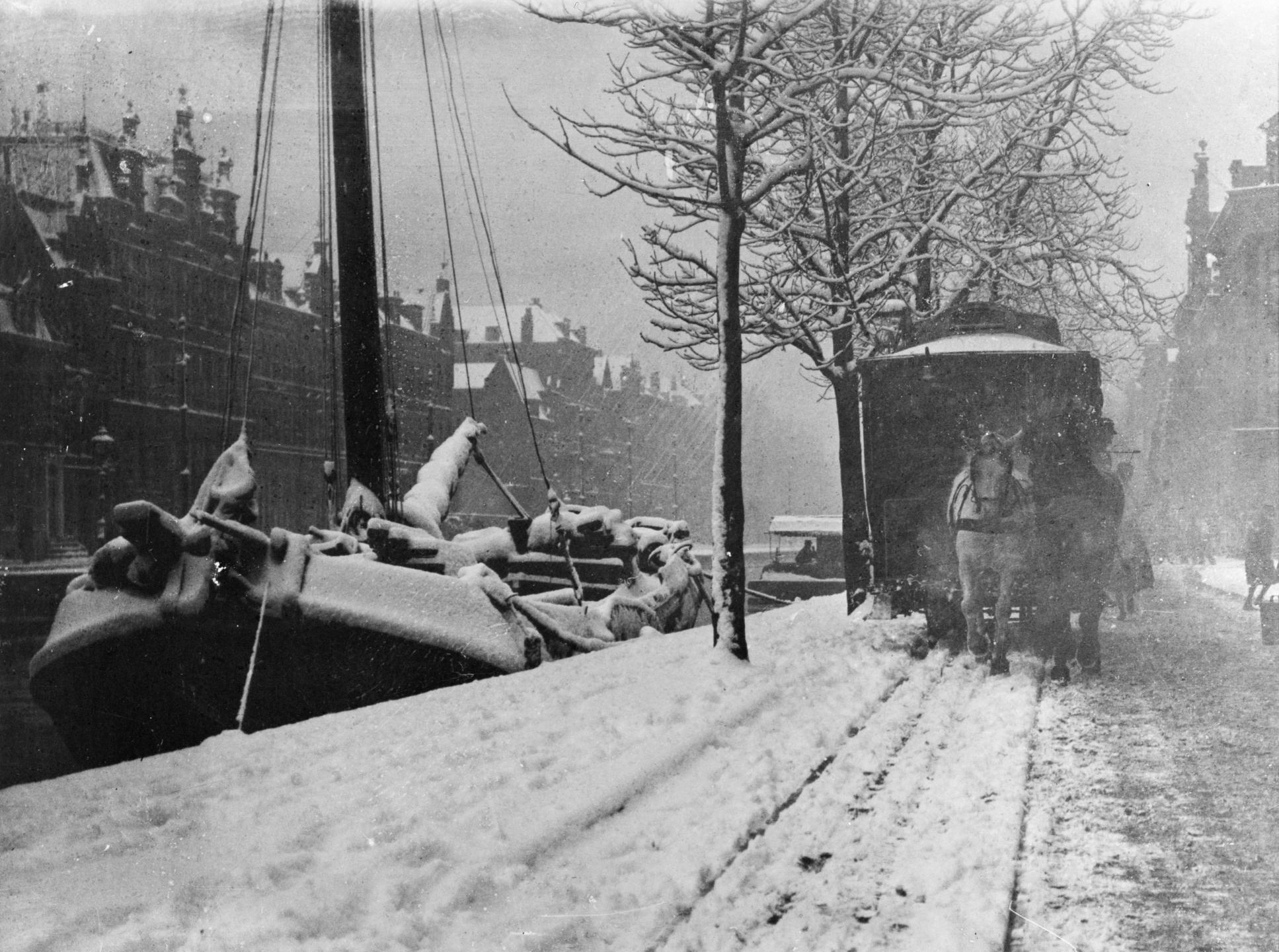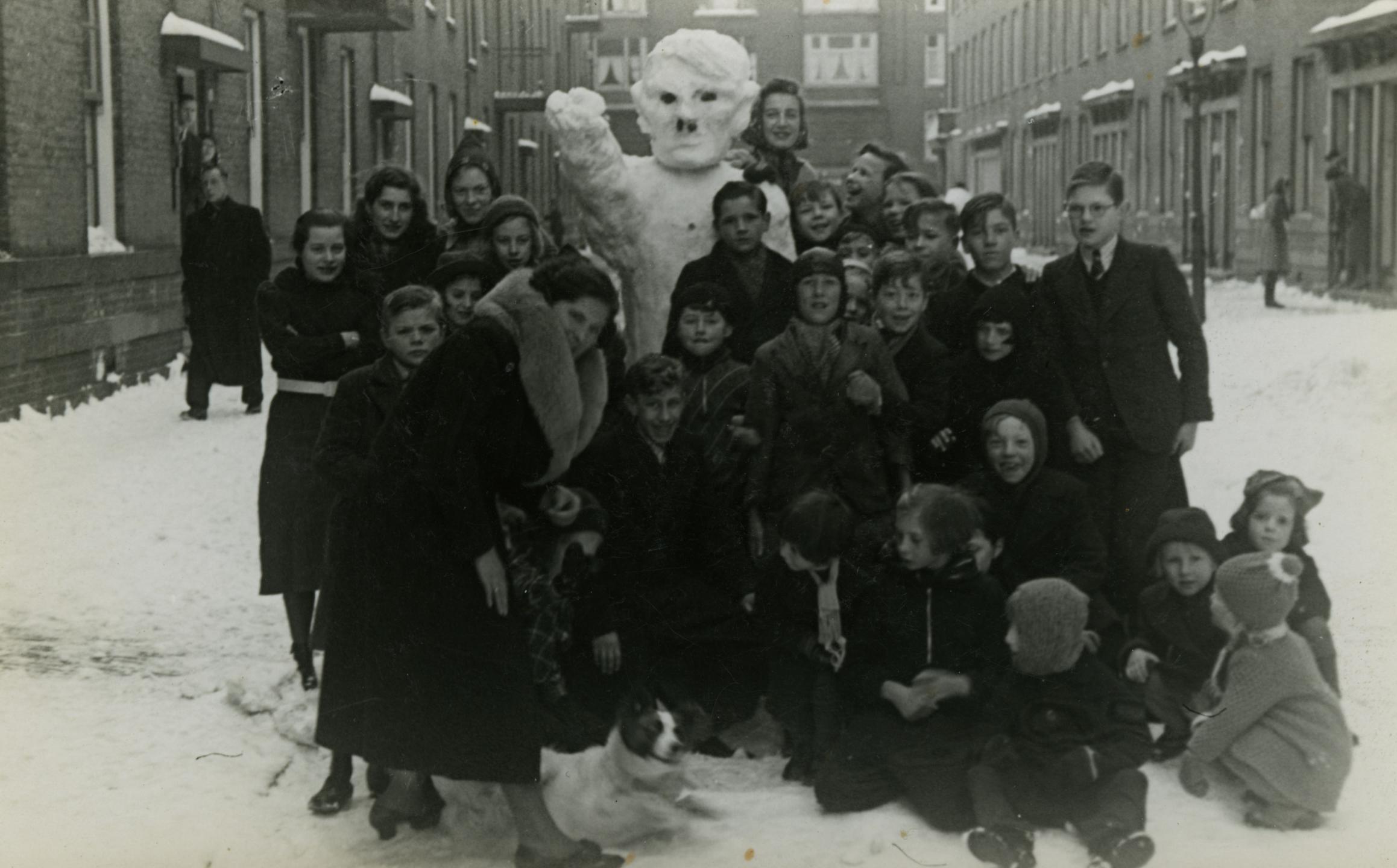 Winterse sfeerbeelden: sneeuw- en ijspret Eendrachtsplein met Santa Claus en oliebollenkraam Het kunstwerk Santa Claus, ook bekend onder de naam 'Kabouter Buttplug' en een oliebollenkraam op het Eendrachtsplein in de sneeuw, 28-1-2019. Foto: René Stoute. Collectie 4305, nummer 273 Kerstbomen Oude en overtollige boeken die, voordat ze naar het Leger des Heils gaan, tijdens de kerstperiode dienst doen als kerstboom in de Gemeentebibliotheek, 1995. Foto: Leunis Verlinde Wegener/ De Persgroep. Collectie 4282, nummer 1995-1441 Kerstboom aan de Voorhaven in Delfshaven, 1993. Foto: Leunis Verlinde Wegener / De Persgroep. Collectie 4100, nummer 1993-3676 Onbekende familie in de woonkamer bij de kerstboom, december 1945. Foto: F.H. van Dijk. Collectie 4117, nummer 1976-4718 Sneeuwpop Hitler Bewoners van de Jan Kobellstraat in Tussendijken poseren met een sneeuwpop die Adolf Hitler voorstelt. Vervaardiger onbekend. Geschat 1939-1941. Collectie 4100, nummer 12213. Rotterdam in de sneeuw in verschillende jaren. Besneeuwde Voorhaven met Piet Heynsbrug, 1947. Foto: Het Vrije Volk. Collectie 4100, 1972-8279 Kinderen maken een sneeuwpop op de Provenierssingel, 1979. Foto: Lex de Herder. Collectie 4100, nummer 2005-9852 Sneeuwval bij avond aan de Dreef in Tuindorp Vreewijk, 1930. Fotograaf onbekend. Collectie 4100, nummer 1972-58 Sleperswagen in de sneeuw aan de Boompjes, ter hoogte van nummer 177, 1939. Foto: R. Boske. Collectie 4210, nummer 31 Vrachtwagen in de sneeuw op de Wijnhaven. Op de achtergrond de Grote Wijnbrug, 1939. Foto: R. Boske. Collectie 4210, nummer 65 Schiedamseweg met reclamezuil nabij het Marconiplein. Sneeuw tussen kerst en nieuwjaar. Op de achtergrond rechts het Witte dorp, 1985. Fotograaf onbekend. Collectie 4100, nummer 1986-296 Paardentram Schiekade Een paardentram op de Schiekade in de sneeuw, 1910. Foto: B.H.W. Berssenbrugge. Collectie 4113, nummer IX-2828-03